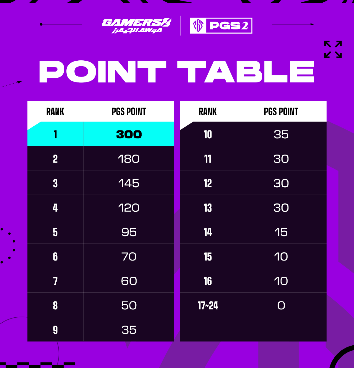 本次PGS2的积分十分重要,事关PGC2023全球总决赛门票。PGS是独立的积分系统,PGS1和2所给到的积分虽有差异,但相同点是:只有前十六名的队伍才能获得积分,与此同时,在PGS1和2中获得最多PGS积分的前4支队伍能直接获得PGC2023全球总决赛的门票。